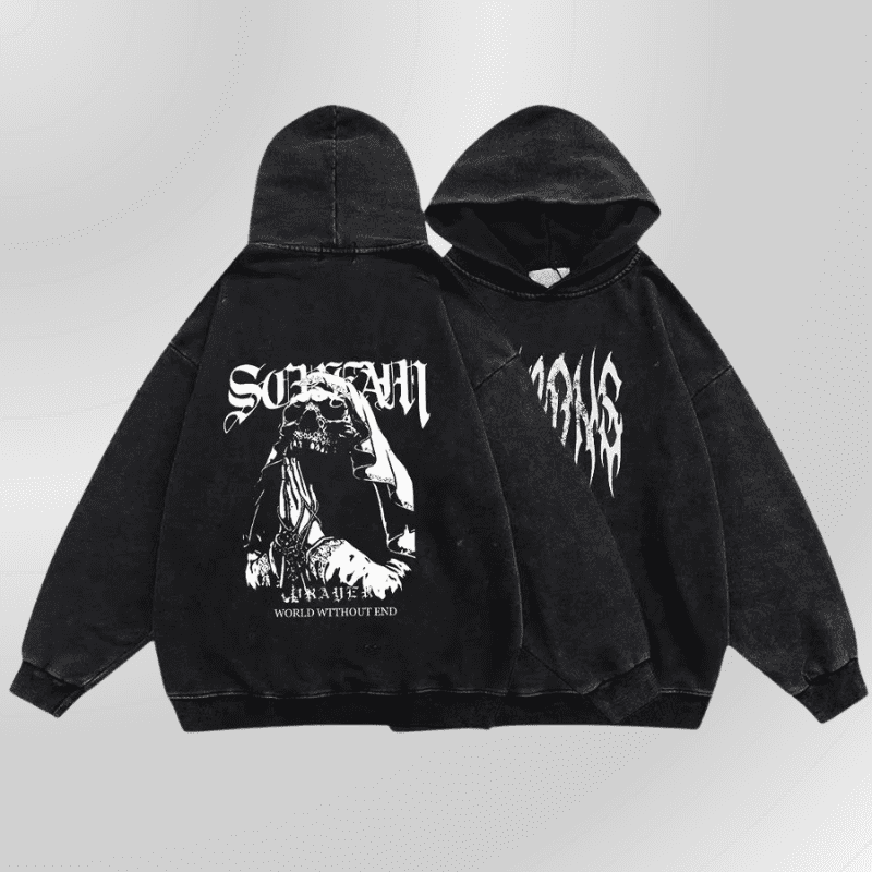 Alternativ svart Grunge-hoodie med huva - Pray Visa alternativ