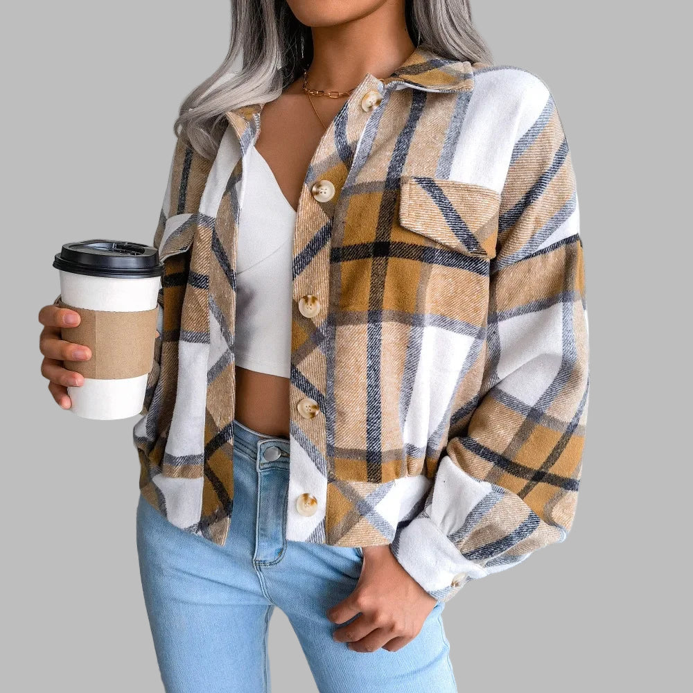 Beige Grunge Skjorta i Rutigt med Fickor Visa alternativ