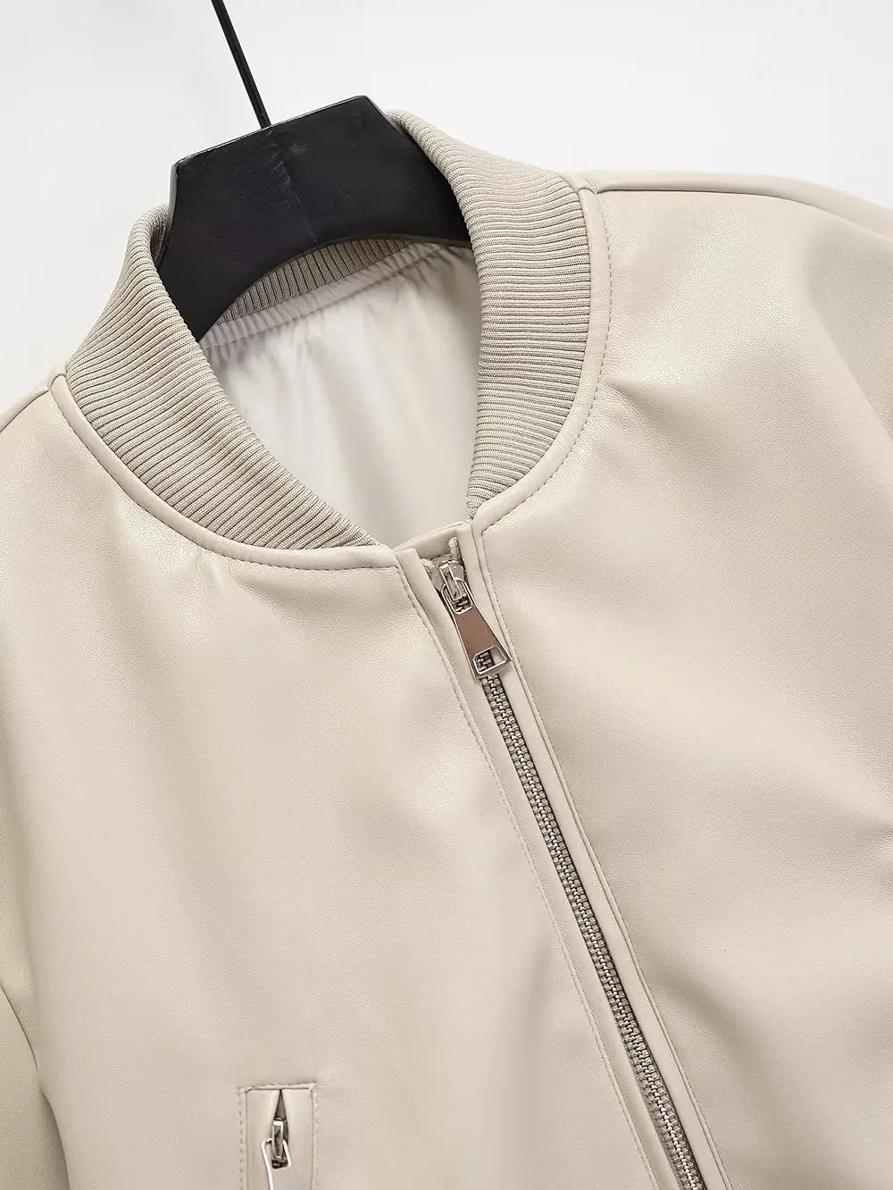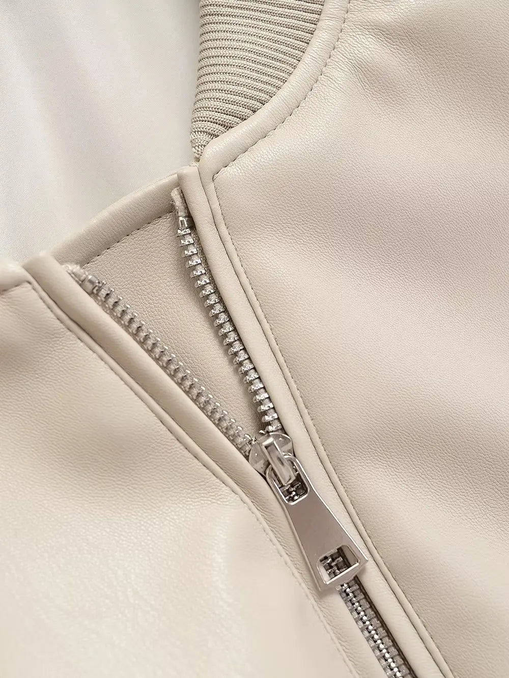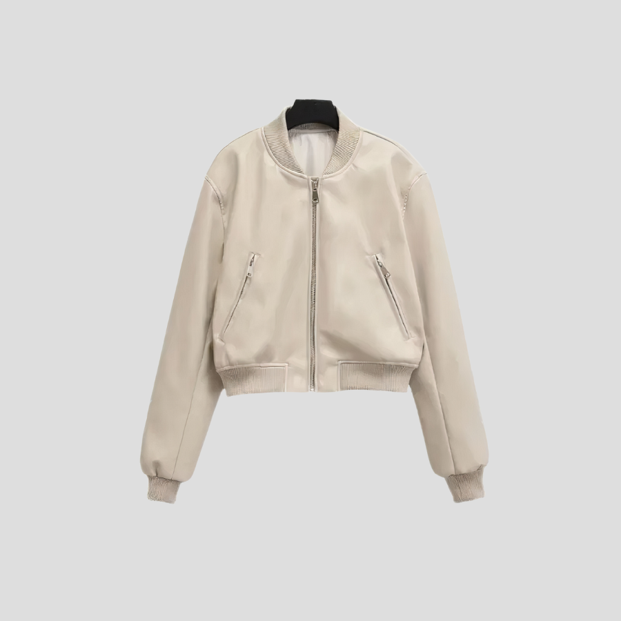 Beige Punk Rock Bomberjacka med Dragkedjor och Resårmuddar Visa alternativ