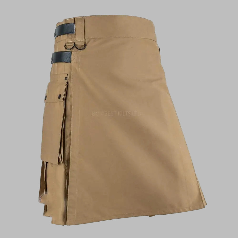 Beige Steampunk-kilt med Läderremmar och Spännen
