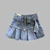 Blå punk jeanskjol med bälte och veck Visa alternativ