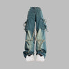 Blå punkiga jeansbyxor med slitna cargo-fickor