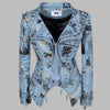 Blå punkrock-metal bikerjacka med tidningsprint