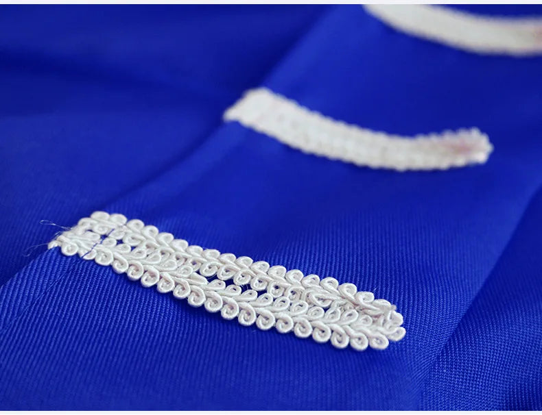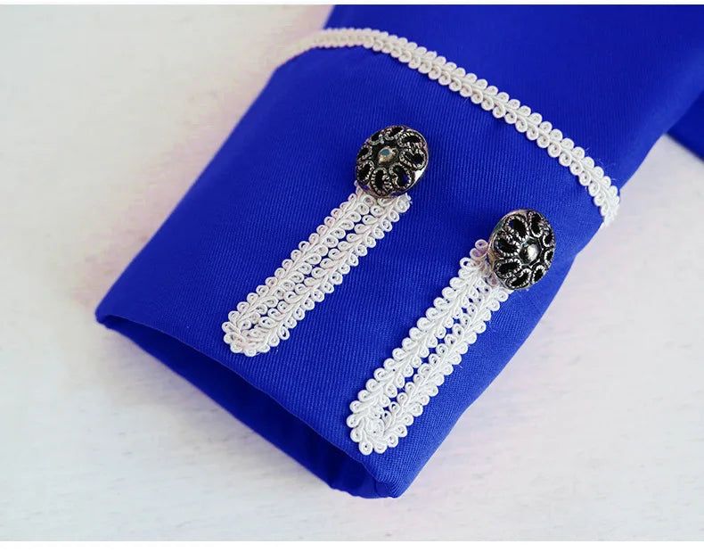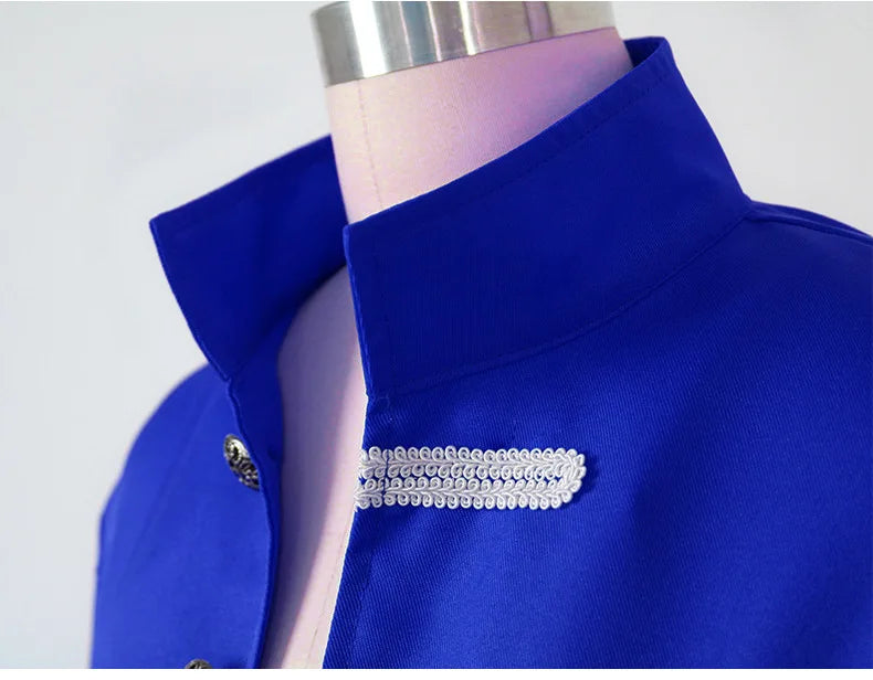 Blå Steampunkrock med Vita Dekorativa Snören Herr Visa alternativ