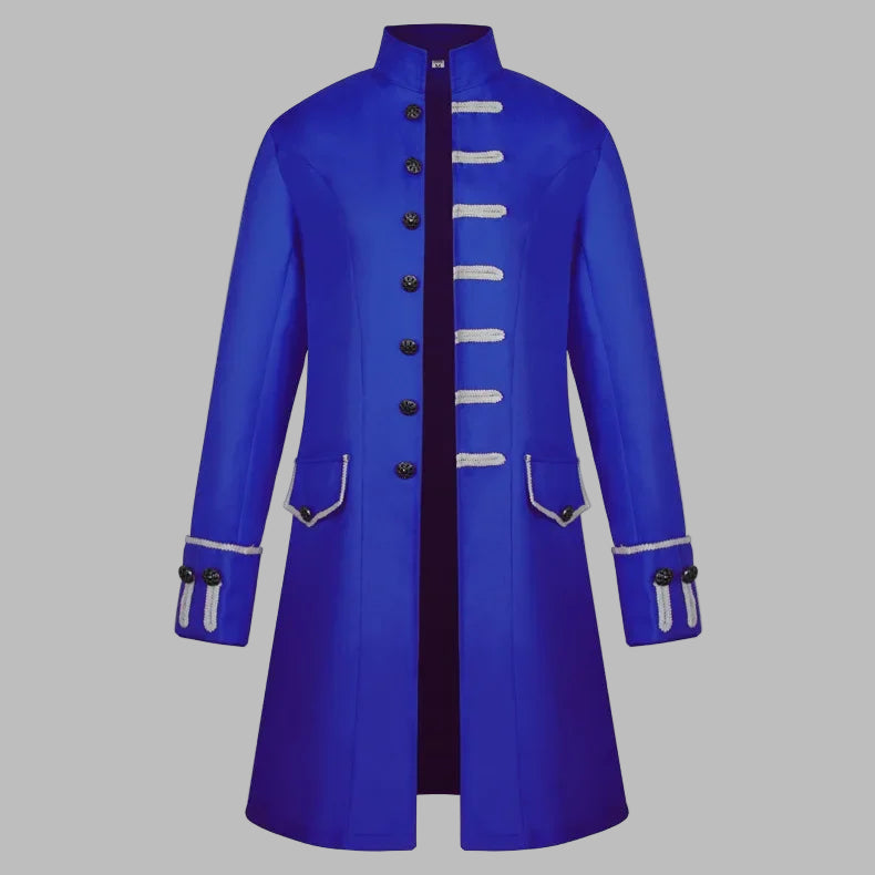 Blå Steampunkrock med Vita Dekorativa Snören Herr