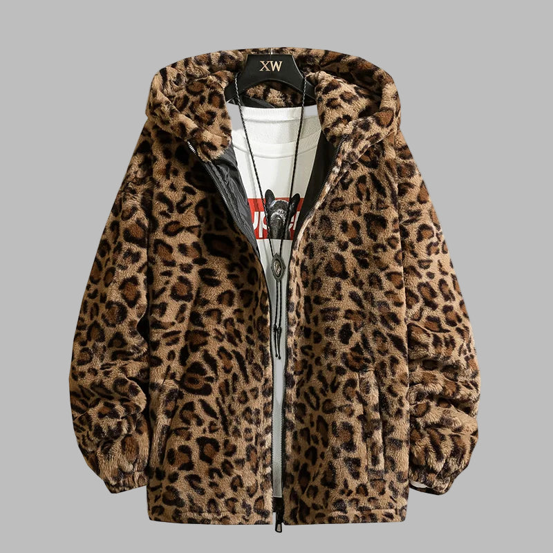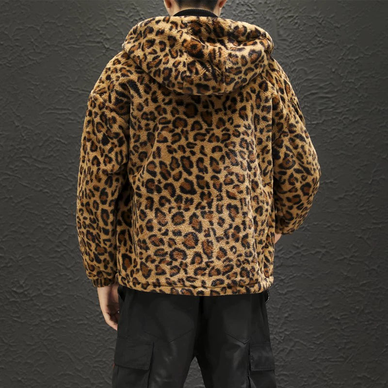 Brun Leopard Rock Hoodie i Plysch Varm