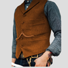 Brun Rock Väst med Kedja Vintage Fiskbensmönster Finish