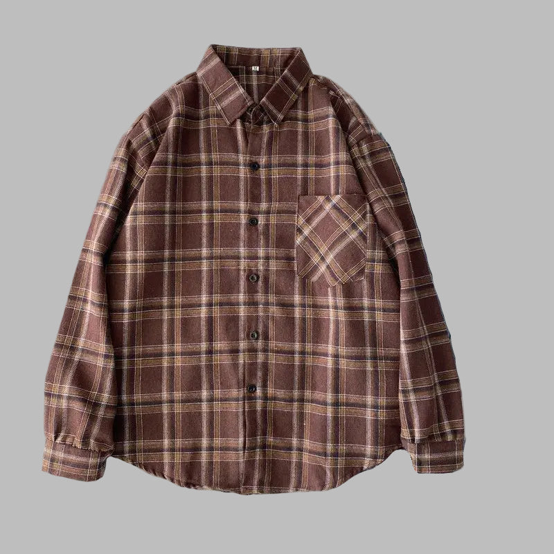 Brun rutig flanellskjorta med ficka i punkrockstil