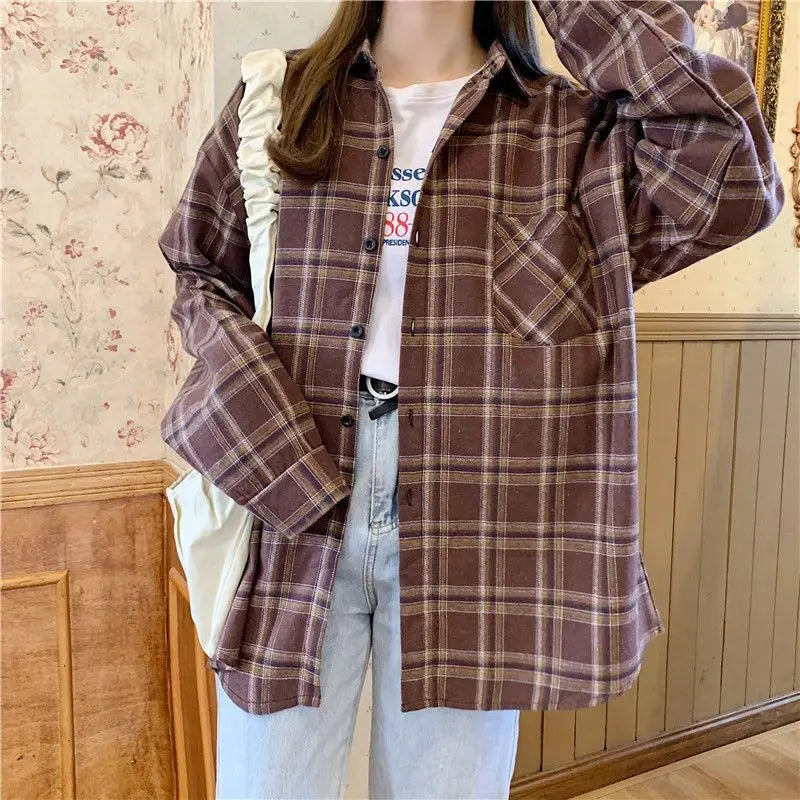 Brun rutig flanellskjorta Punk Rock med ficka Visa alternativ