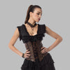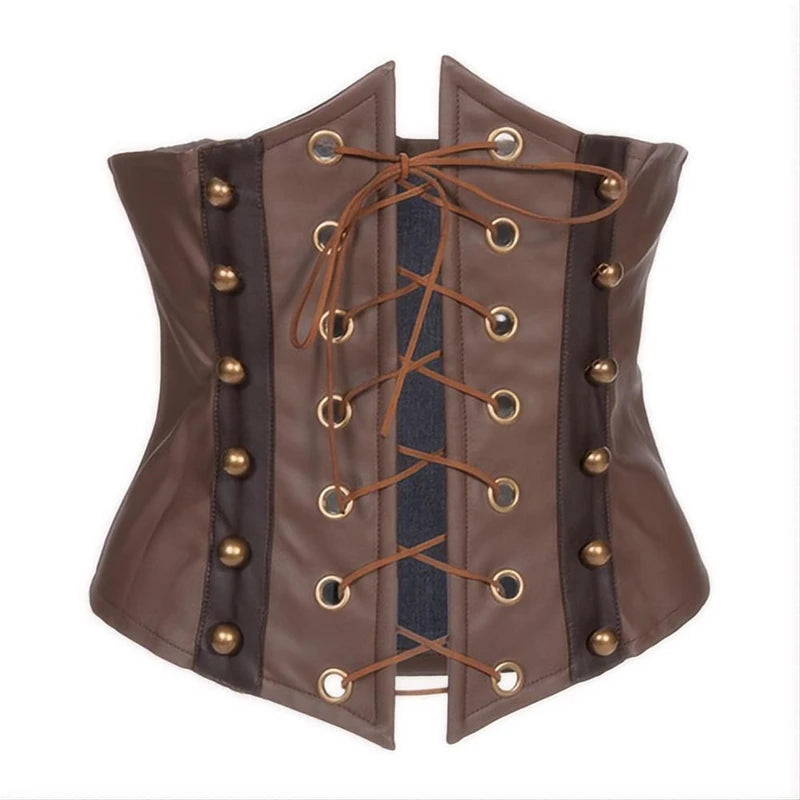 Brun Steampunk Korsett i Läder med Snörning och Knappar