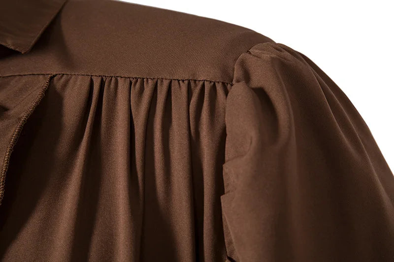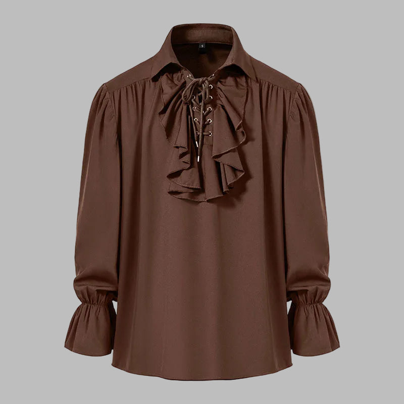 Brun Steampunk-skjorta med Jabots och Retro Snörning Visa alternativ