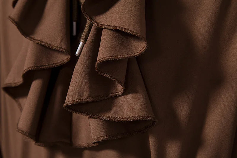 Brun Steampunk-skjorta med Jabots och Retro Snörning
