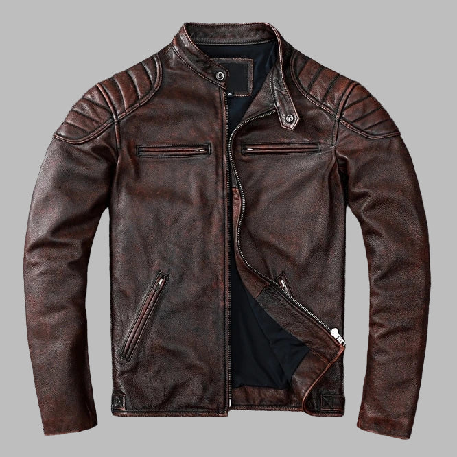 Brun Vintage Skinnjacka med Rockiga Sömmar Visa alternativ