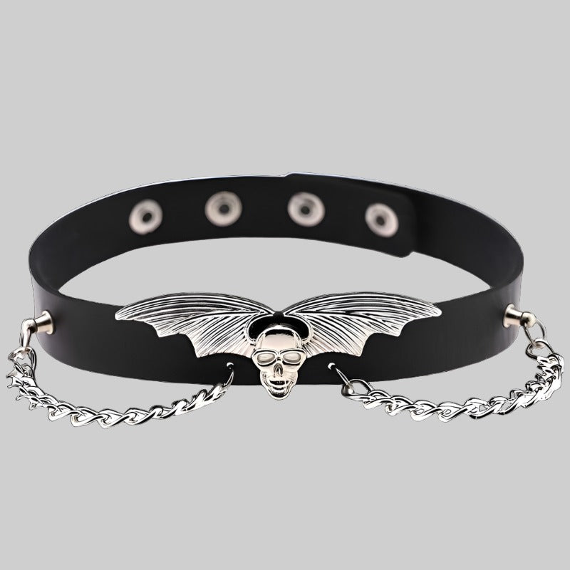 - Vingad dödskalle noggrant skulpterad i metall: förstärkt 3D-effekt