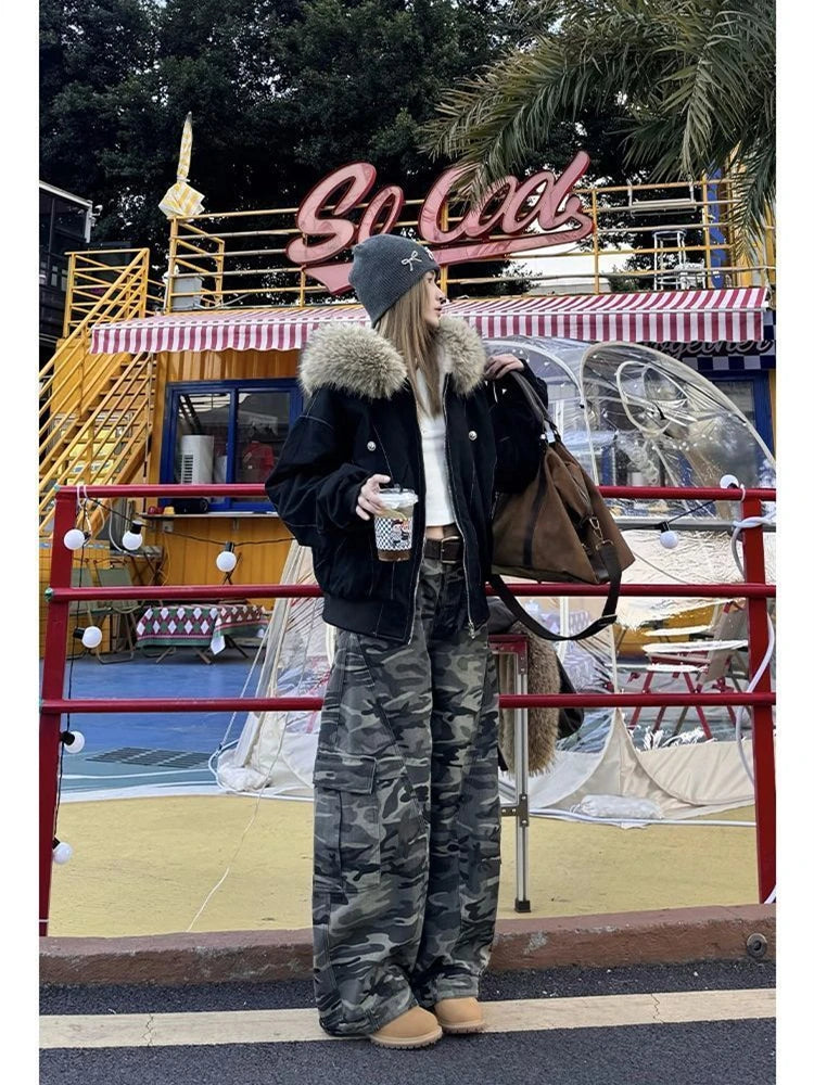 Dam Cargo Byxor Militäriska Kamouflage Fickor Oversize