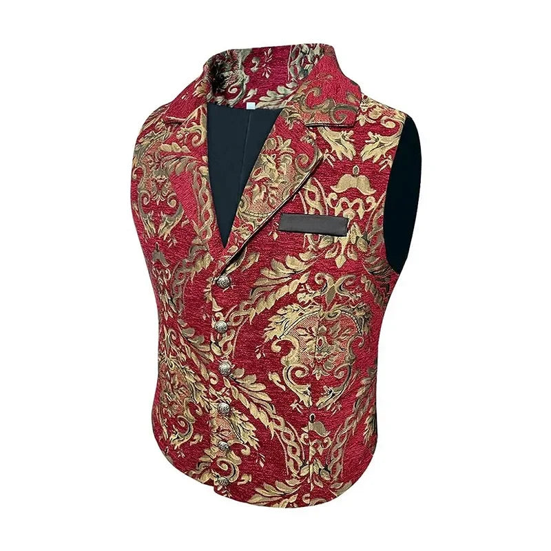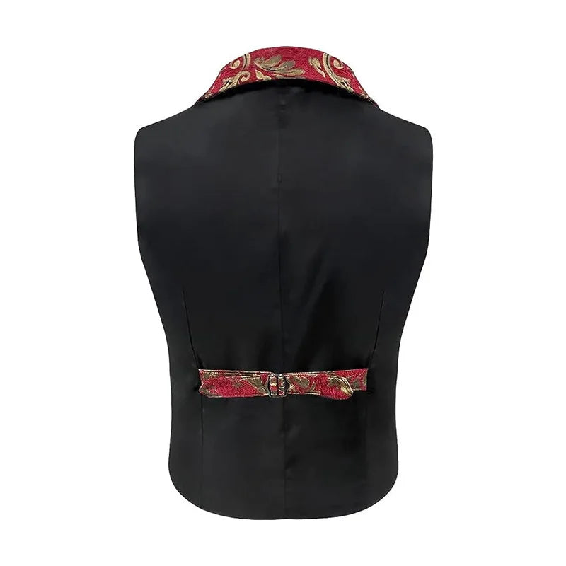 Elegant Steampunk Väst i Röd och Guld Brokad