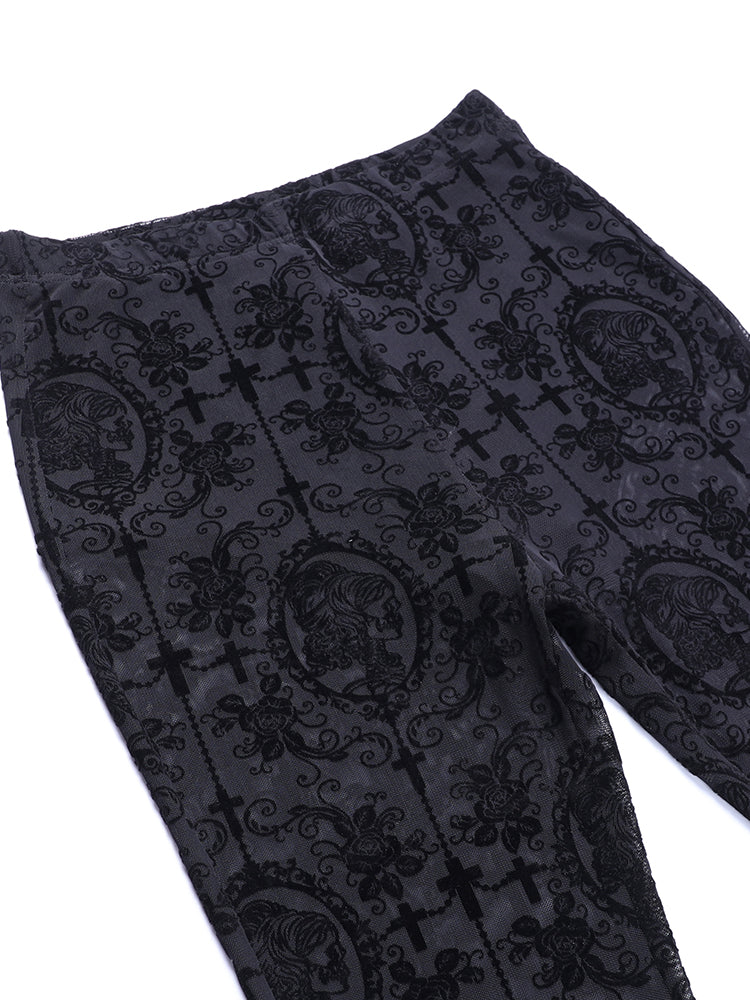 • Subtila Dekorativa Detaljer: Detaljer i form av lapptäcke och spets tillför en konstnärlig och mystisk karaktär till dessa gotiska byxor. Dessa karakteristiska element skapar en harmonisk balans mellan mörker och elegans.