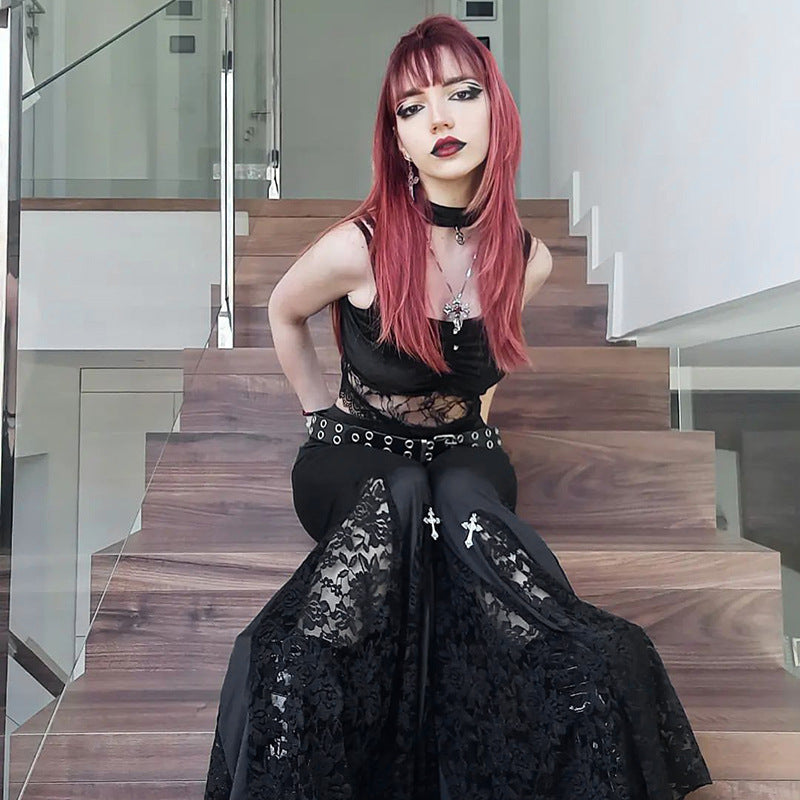 • Subtila Detaljer: Dekorativa detaljer med utskärningseffekt ger dessa byxor en mystisk känsla. Hollow out tillför en subtil gotisk accent som kompletterar plaggets övergripande utseende.