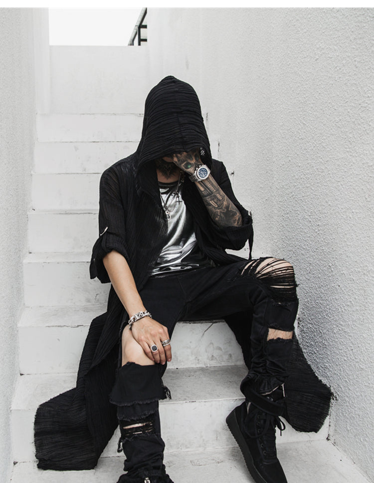 • Mångsidig Huva: Den tillagda huvan ger mångsidighet till denna kappa. Den introducerar inte bara en avslappnad stil, utan kan också skydda dig från lätta sommarregn, samtidigt som den förstärker HIP HOP-estetiken.