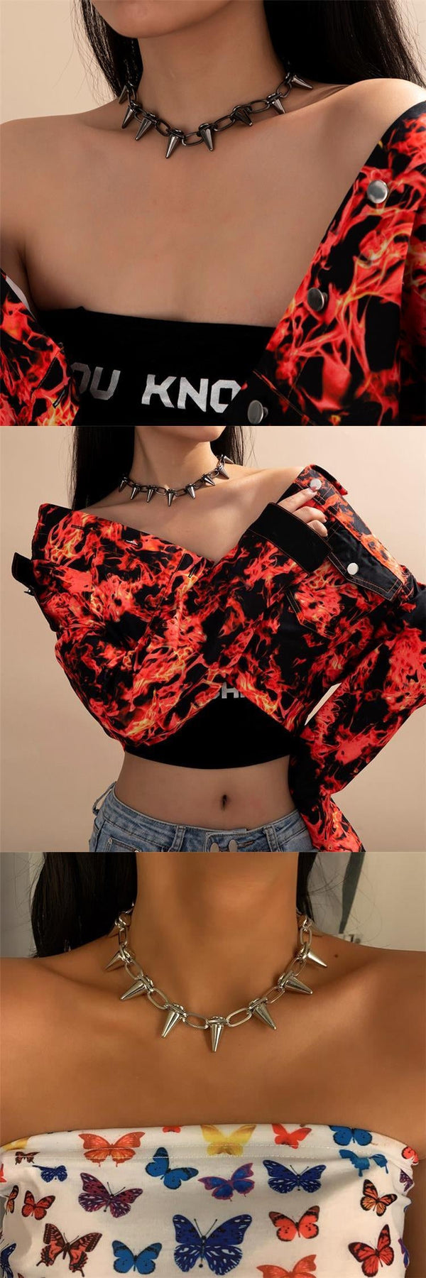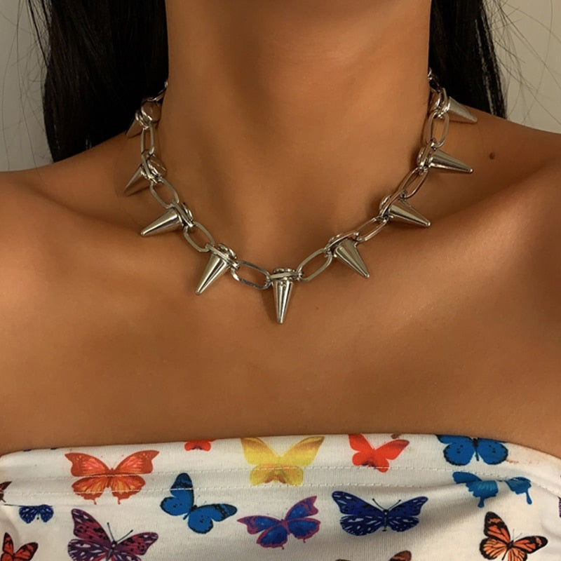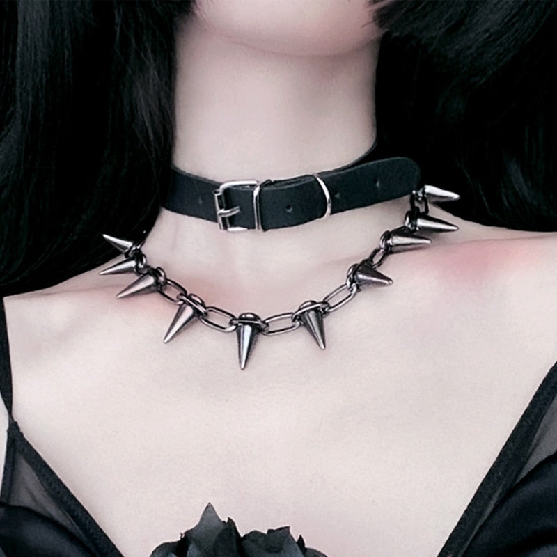 Gotisk Halsband med Spik för Kvinnor Silver 35 cm