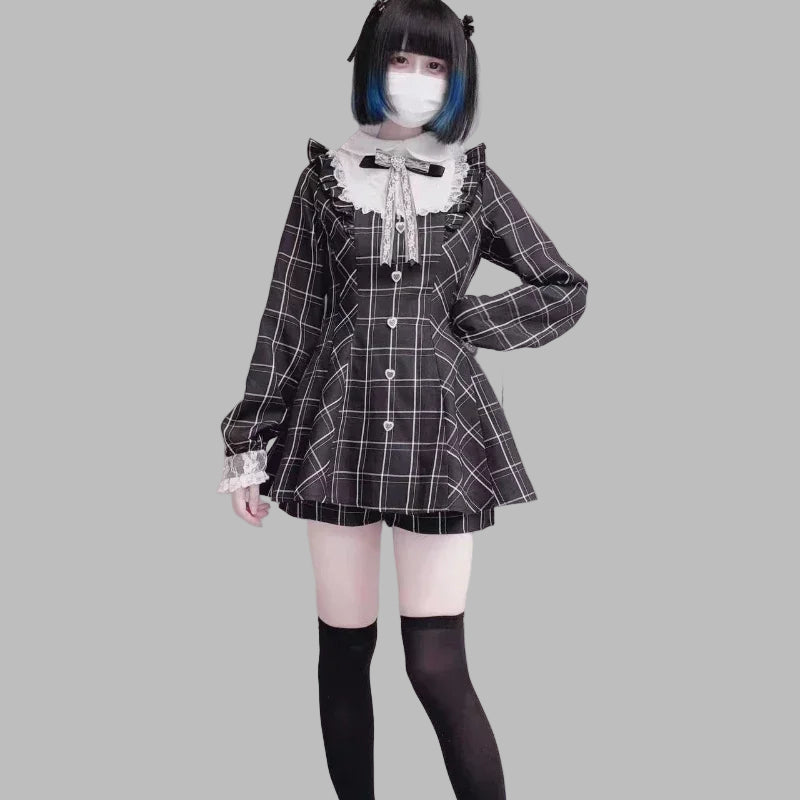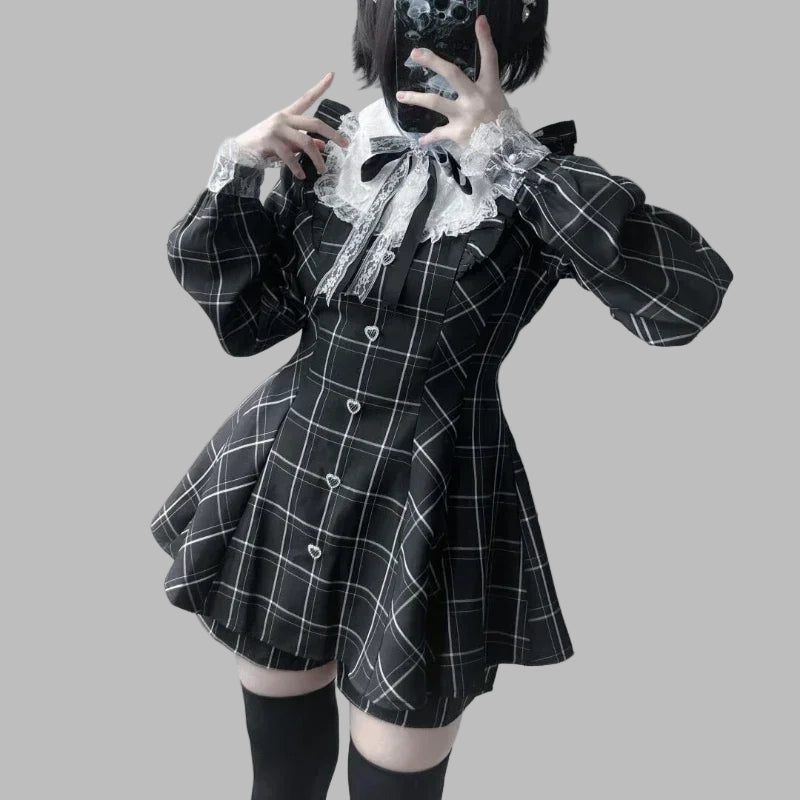 Gotisk Lolita Klänning Svart Rutig Spets Visa alternativ