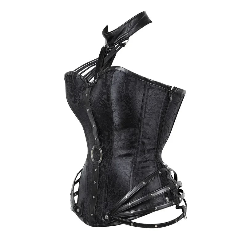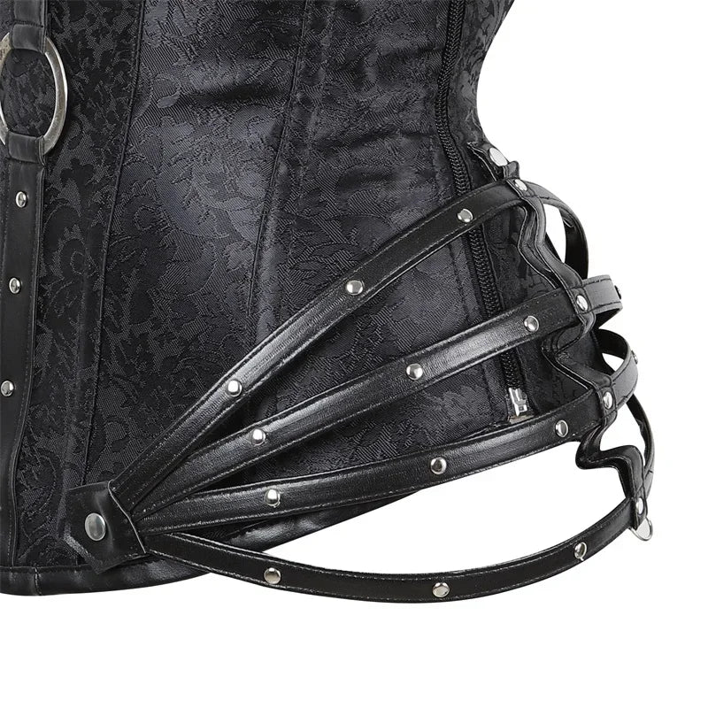 Gotisk metallkorsett med remmar och nitar Svart Punk Rock