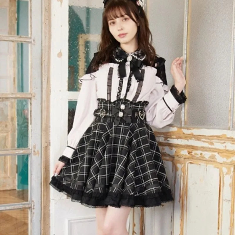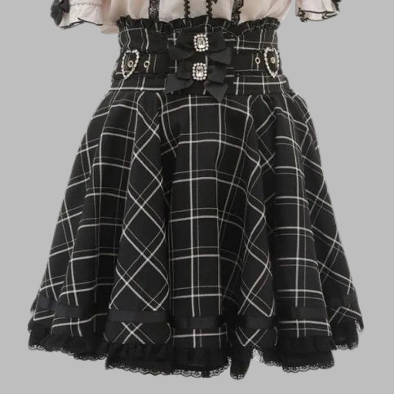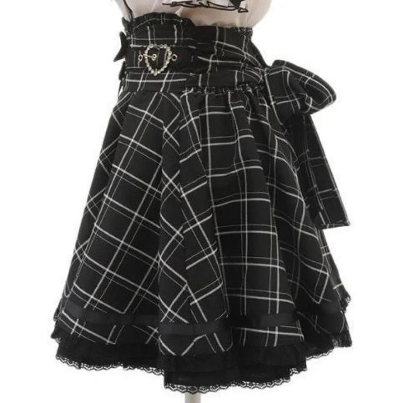 Gotisk Punk Rock-kjol i Rutigt Mönster med Rosett