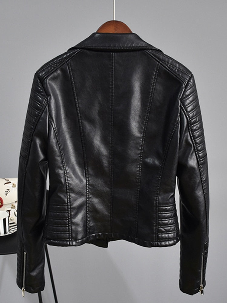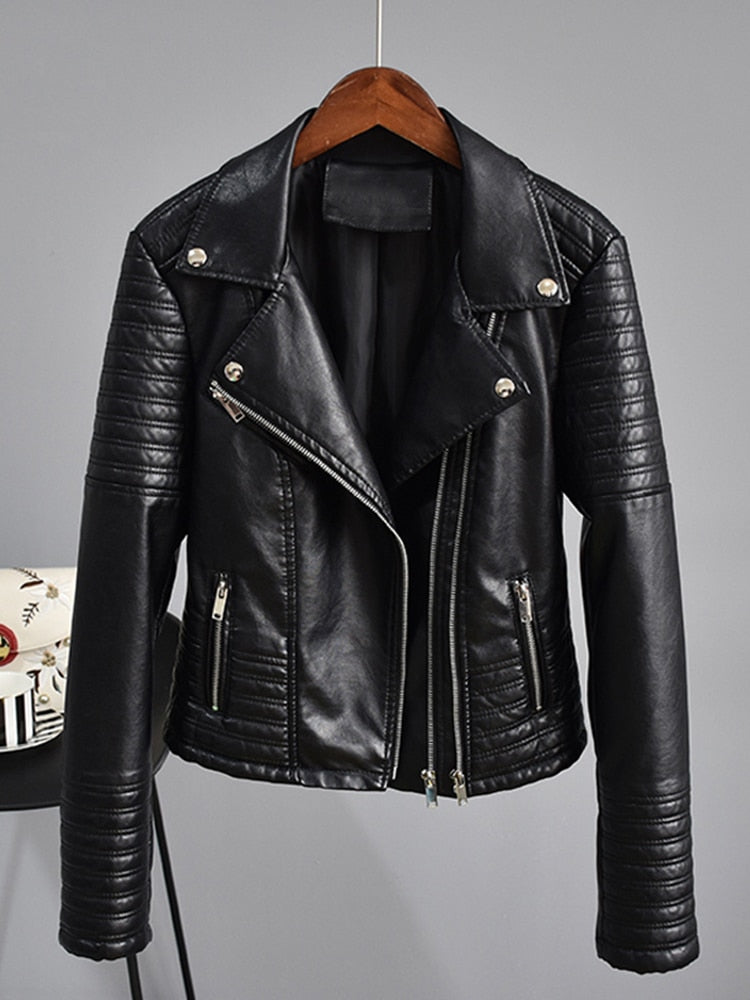 • Bekväm och Elegant: Tillverkad av högkvalitativa material som PVC, konstläder och PU, kombinerar denna jacka komfort och elegans. Dess komplexa krage och dragkedja erbjuder skydd mot väder och vind, samtidigt som den tillför en touch av mörk charm.