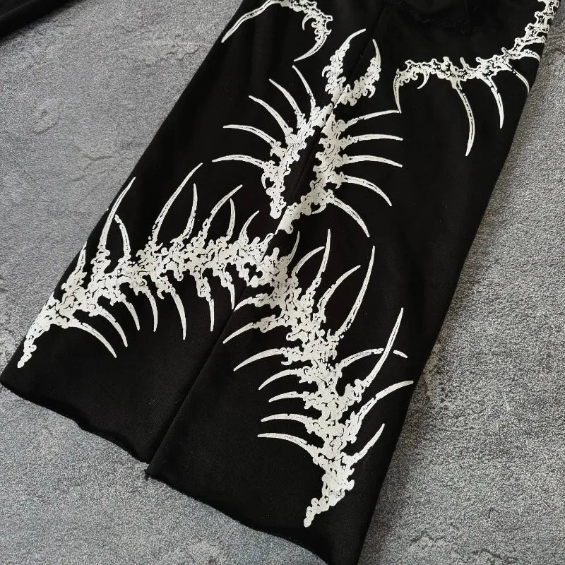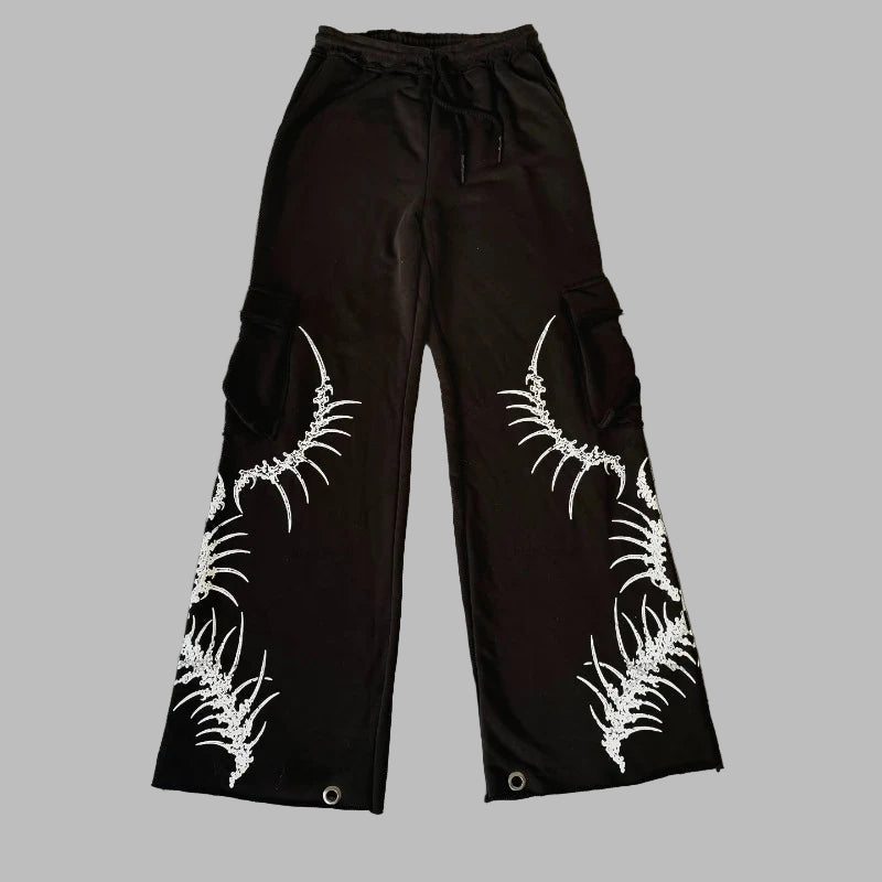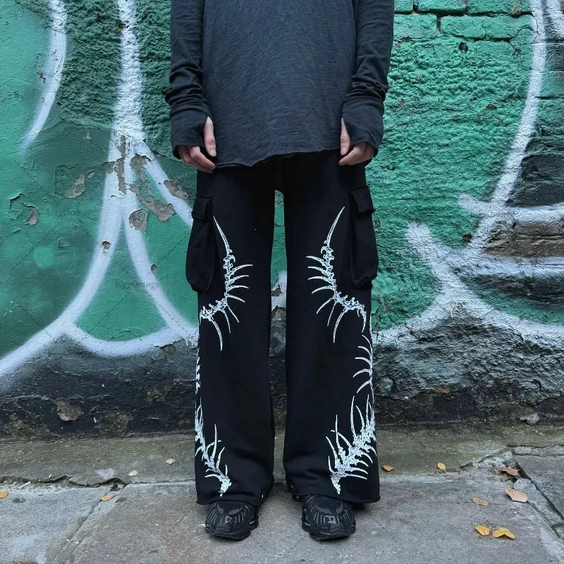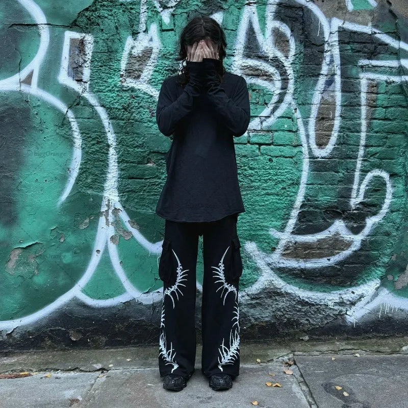 Gotiska Grunge Byxor med Skelettmönster Darkwear