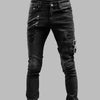 Gotiska svarta herrjeans i rockstil med slitningar, dragkedjor och spännen
