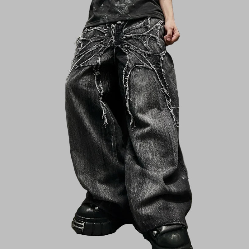 Grå Baggy Punk Metal Unisex Jeans med Kedjor och Slitningar