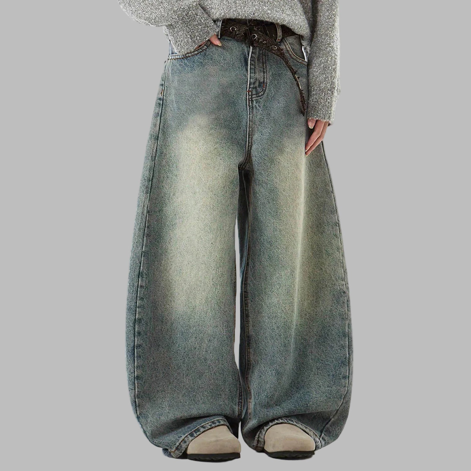 Grå Oversize Grunge Baggy Jeans Dambyxor