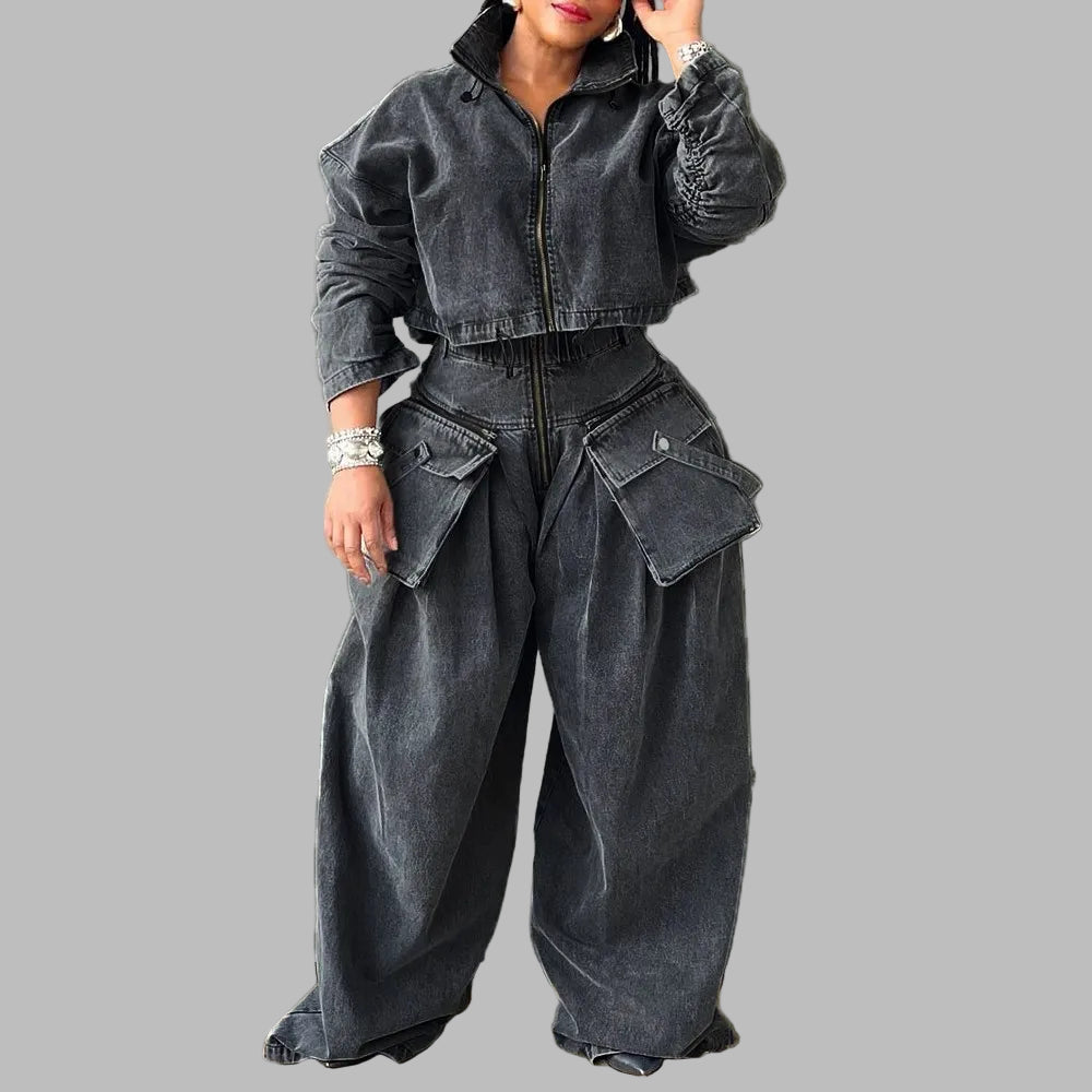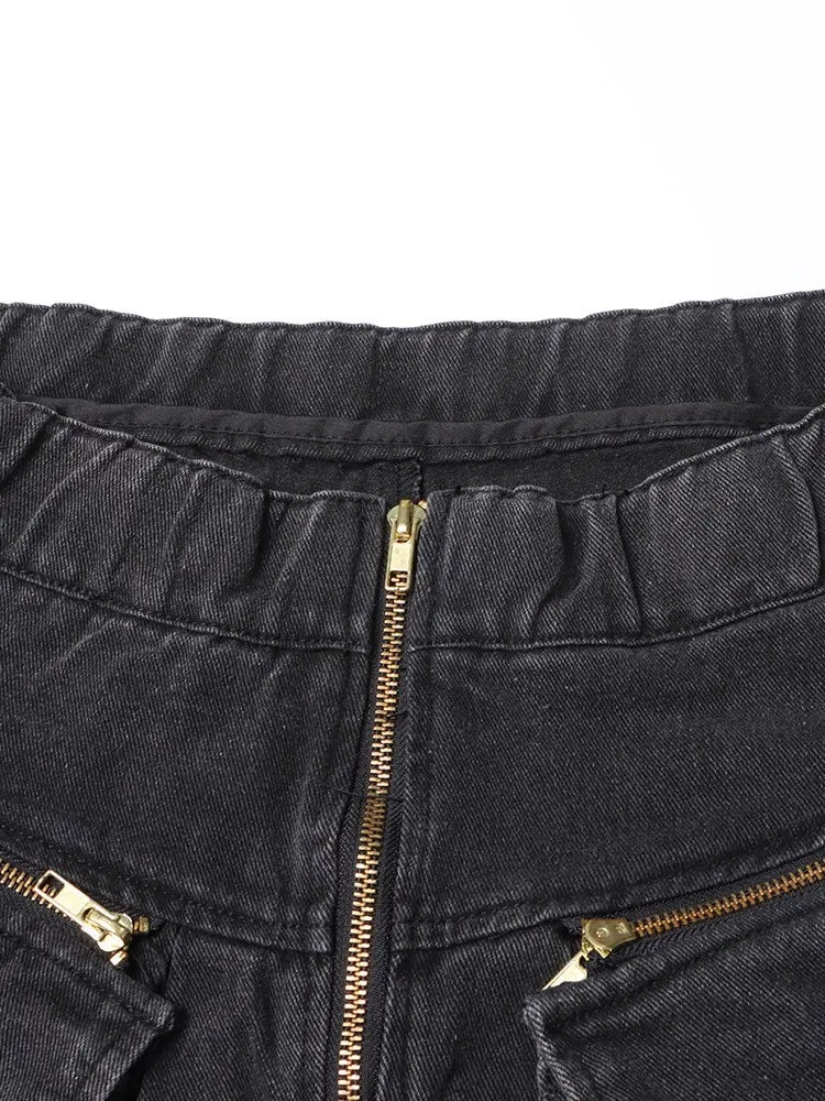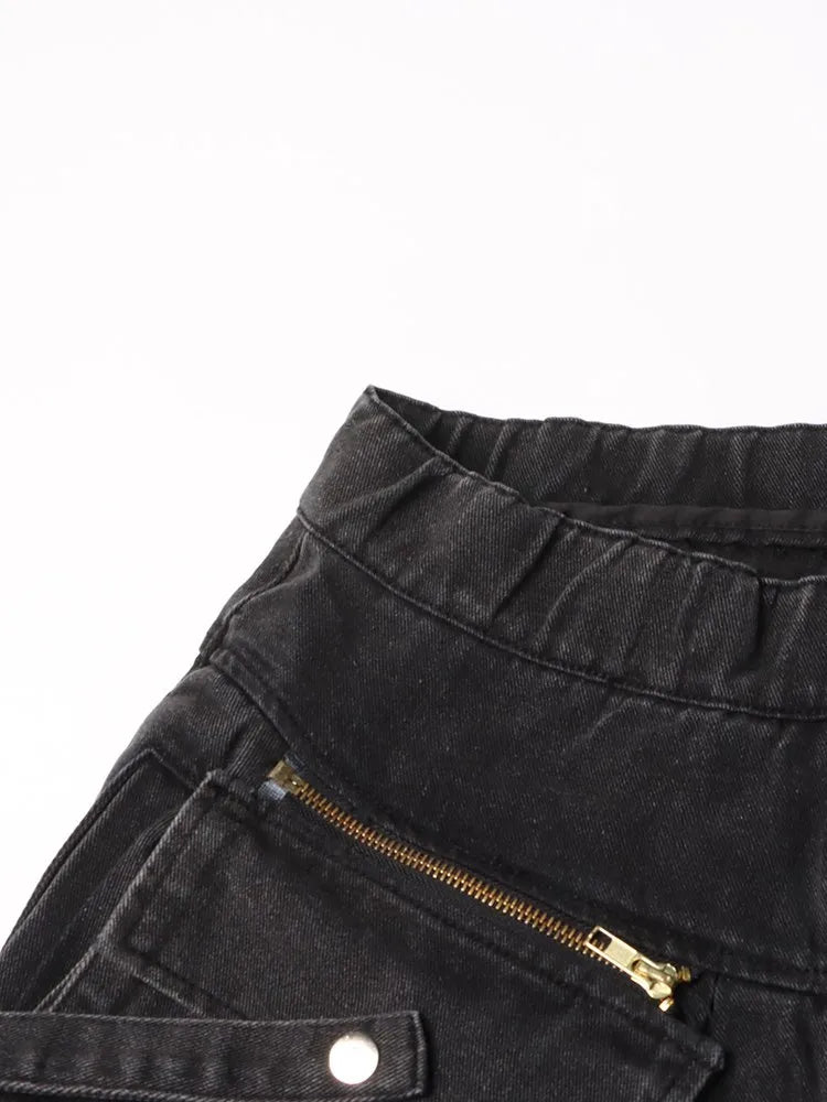 Grå Punk Jeans Overall med Cargo Fickor