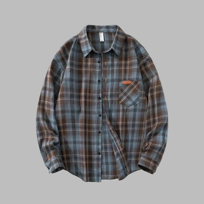 Gråblå Grunge-Rutig Skjorta med Ficka