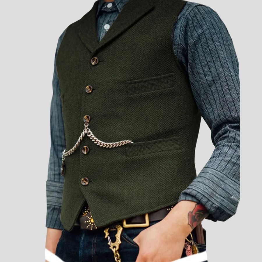Grön Steampunkväst med Fickkedja Fiskbensmönster