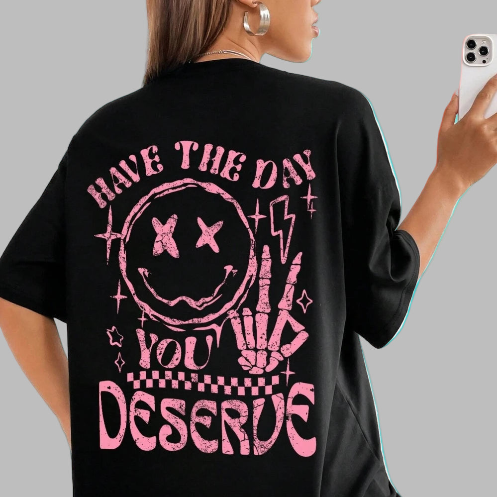 Grunge Rock T-shirt med Rosa Smiley-tryck Oversize Dam