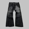 Grunge utsvängda jeans med slitningar och gotiska broderier