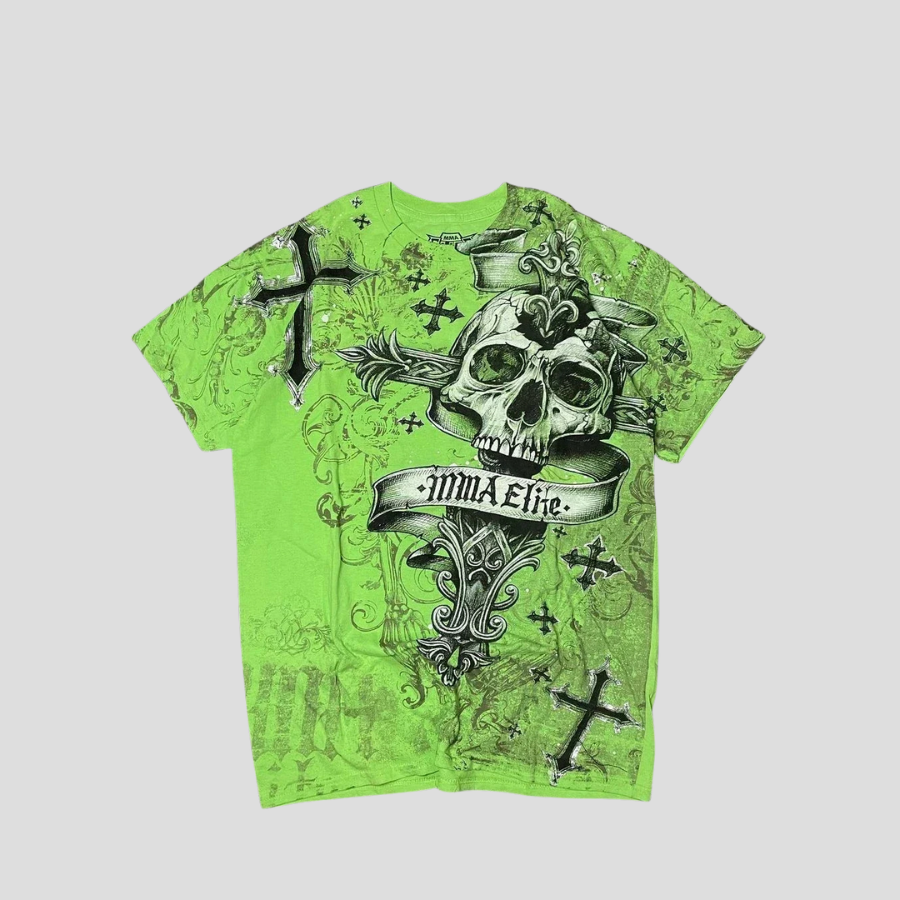 Herr T-shirt Punk Grön Dödskalle Kors Grafik