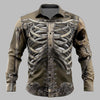 Herrskjorta i metalstil med anatomiskt skelettmönster i beige och svart