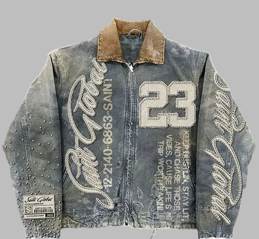 Jeansjacka Rock Grunge Metal med Tryck och Nitar Vintage