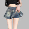 Jeans Mini Kjol Punk med Bälte och Vintage Spännen