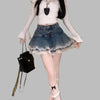 Jirai Kei jeanskjol med vit spets och volanger