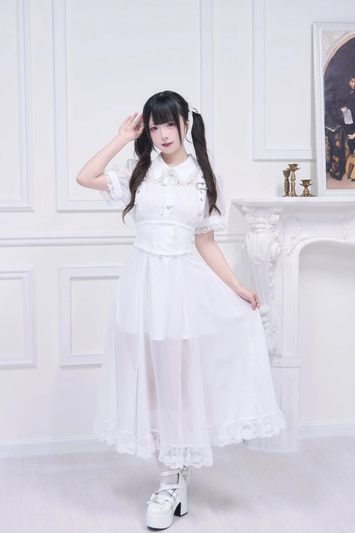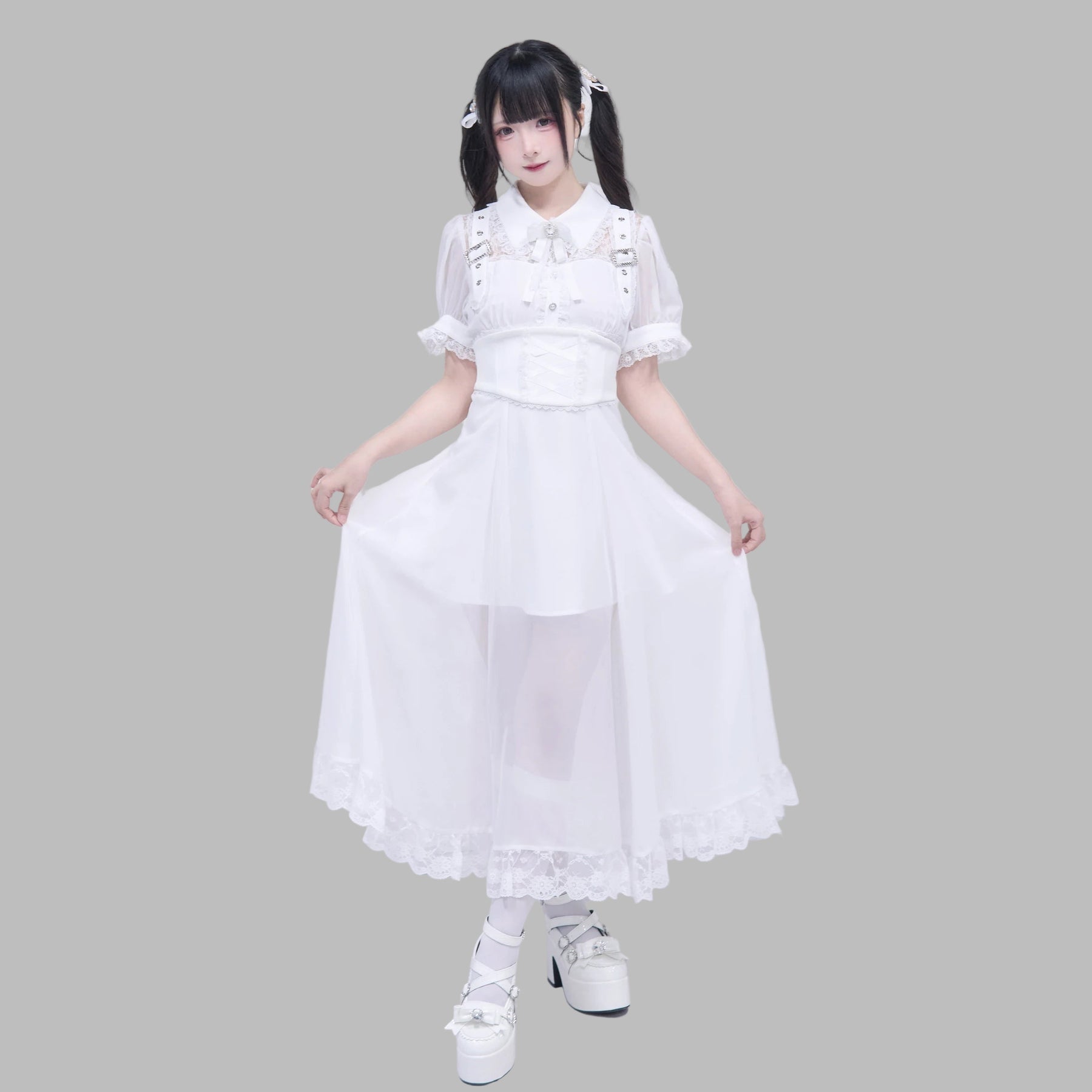 Jirai Kei Lång Vit Klänning med Volanger Kawaii