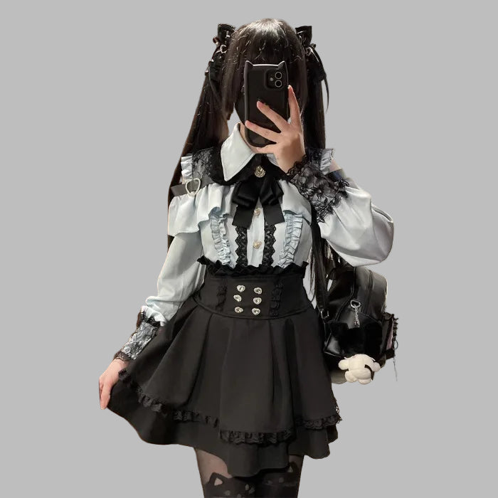 Jirai Kei Set med Svart Spetsvolang Visa alternativ