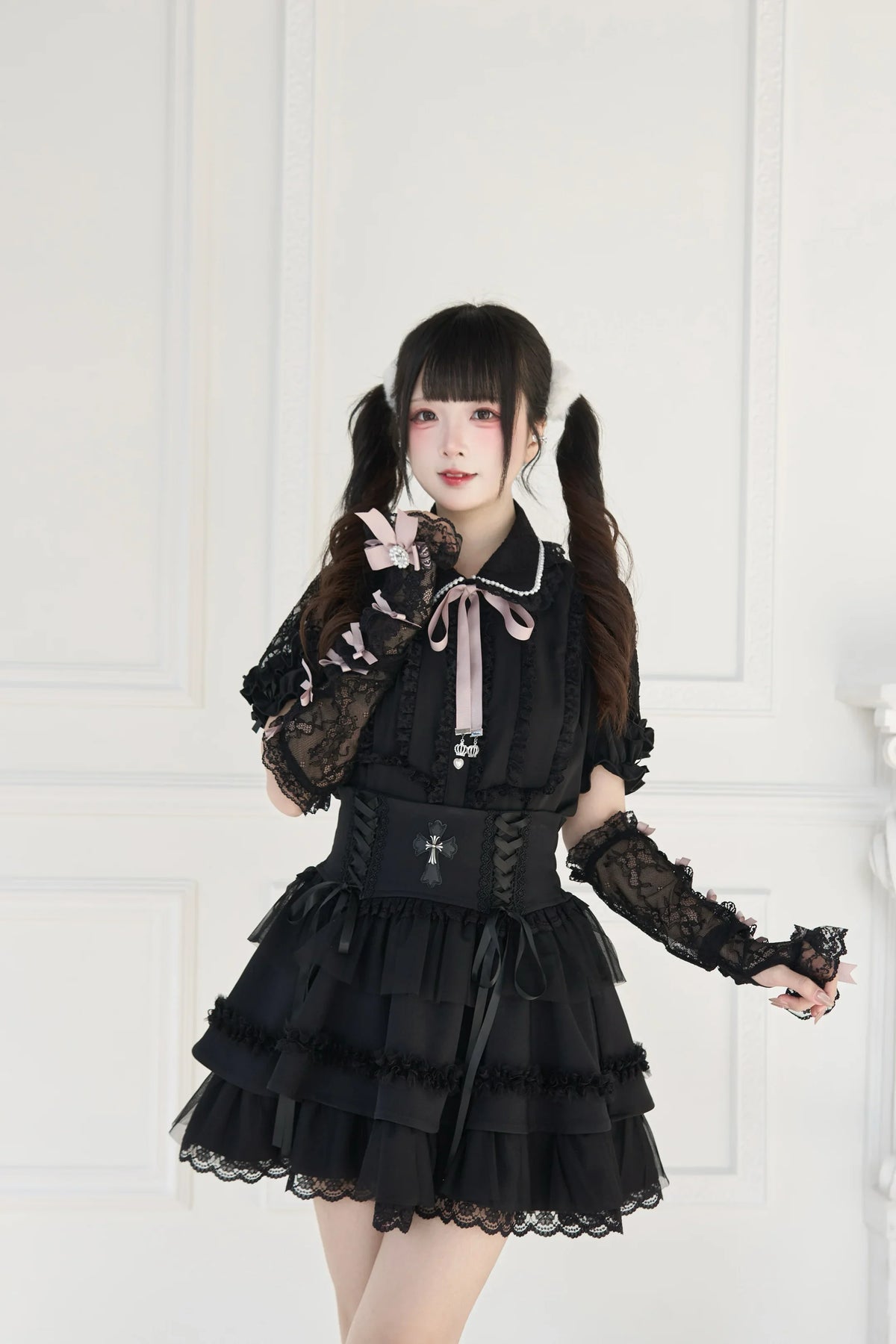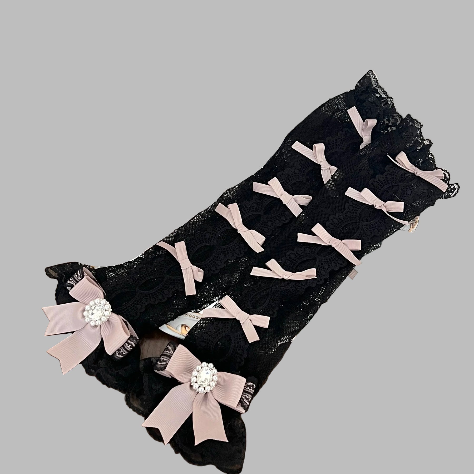 Jirai Kei Svarta Strumpor med Rosa Rosetter Kawaii Lolita Visa alternativ