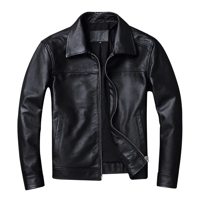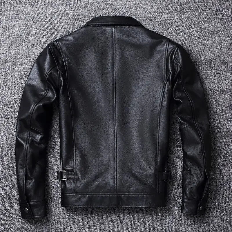 Klassisk herrmotorcykeljacka i skinn, metalstil