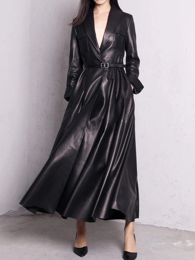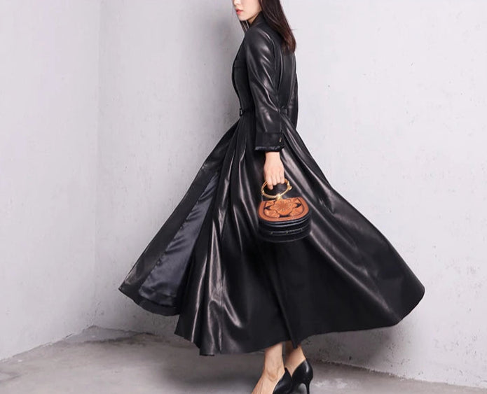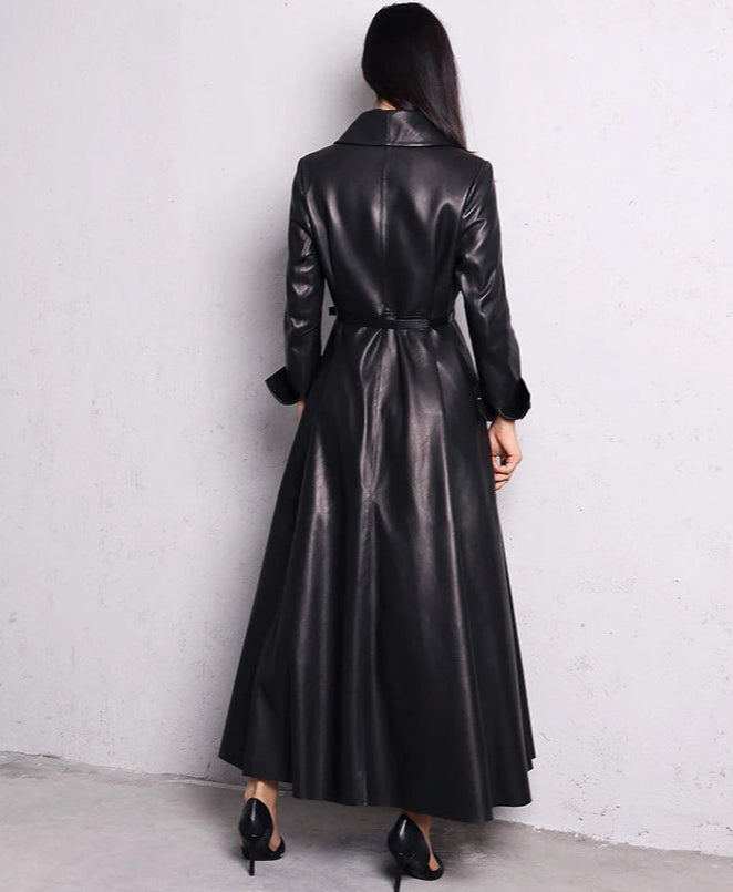 Lång Svart Elegant Rock Metal Goth Läderkappa