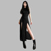 Lång Svart Rockklänning med Polokrage och Slitsar