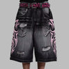 Långa Punk Jeansshorts med Rosa Mönster och Bälte