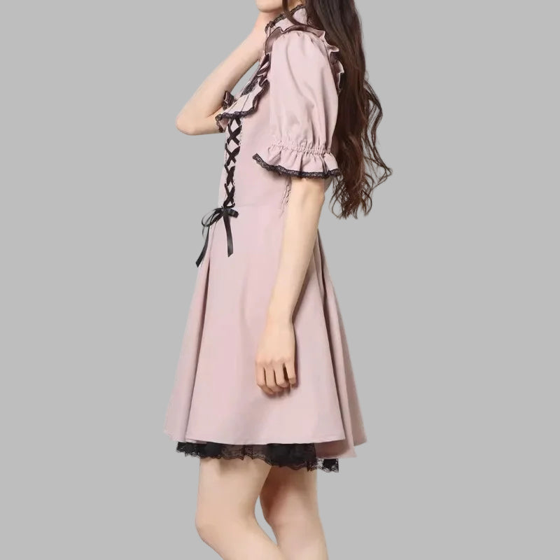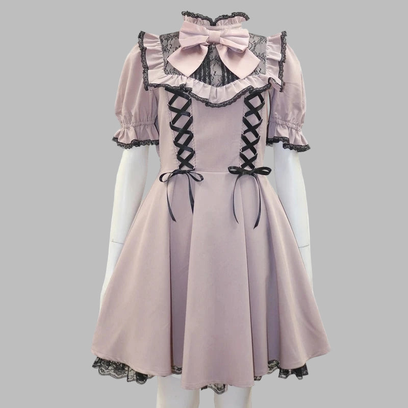 Lila punk rock-klänning med dubbla snörningar och rosetter
